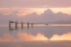 Sunrise at Buntal Village, Kuching, Malaysia. The image was captured on Fuji Provia 1000F medium format film.